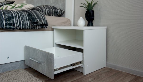 Прикроватные тумбы выполнены в стиле минимализм: строгие линии, идеальные пропорции, отсутствие декора. Все варианты цвета корпуса и фасадов подобраны в нейтральных сочетаниях, они универсальны для любого стиля интерьера, их можно сочетать со множеством ярких и насыщенных оттенков, а с помощью смены цветных текстиля и аксессуаров - полностью преображать пространство. Прикроватные тумбы с двумя ящиками на телескопических направляющих - поместят в себя все вещи, которые важно иметь под рукой - телефон, светильник или любимая книга. Идеально компонуются со всеми модулями системы Аврора.