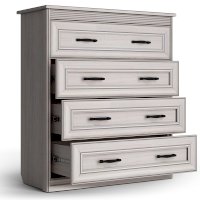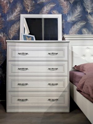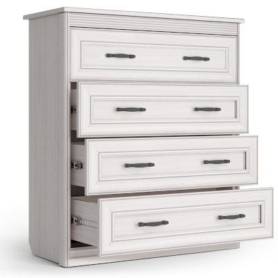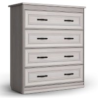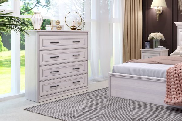 В комоде вам доступны четыре выдвижных ящика на шариковых направляющих с механизмом полного выдвижения. Такая конструкция позволяет структурировать и упорядочить хранение. А отдельным бонусом применения такого предмета в интерьере является возможность украсить пространство, расположив на столешнице вазу, статуэтку или красивый светильник.