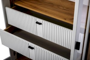 • За сборными распашными дверями со стеклом две стационарные горизонтальные перегородки и две съемные стеклополки.