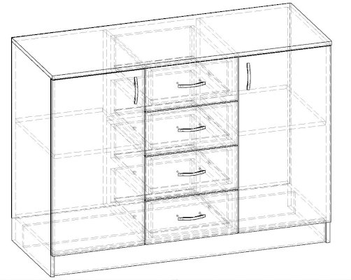• Корпус, полки и фасады изготовлены из ЛДСП 16 мм с кромкой ПВХ 0,4 мм.