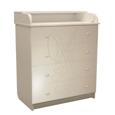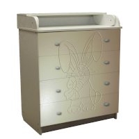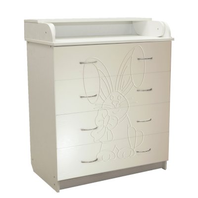 Вам понравится привлекательный внешний вид детского комода. На его лицевой части вы увидите углубленный декор в виде зайца с бантом.