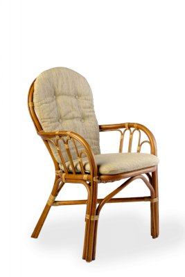 Стул из натурального ротанга с большой съемной подушкой и удобной высокой спинкой.