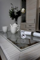 Стол журнальный - часть серии Александра, послужит прекрасным дополнением к мебели. Стекло с пескоструйным рисунком делает столик уникальным и воздушным.