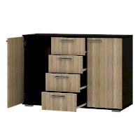 Комод Стандарт №2 – прекрасный выбор для спальни или гостиной! Данная модель состоит из четырех центральных выдвижных ящиков, а также двух боковых секций с распашными дверцами. Комод позволит вместить большое количество вещей, одежды и любых мелочей.