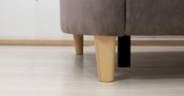 Комплект состоит из прямого и углового диванов, кресла для отдыха и пуфа.