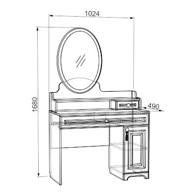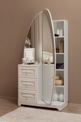 Трюмо из серии «Белла» – настоящая находка для истинных леди. Трюмо сочетает в себе утонченный дизайн, функциональность и удобство. Столешницу из МДФ украшает фрезеровка.