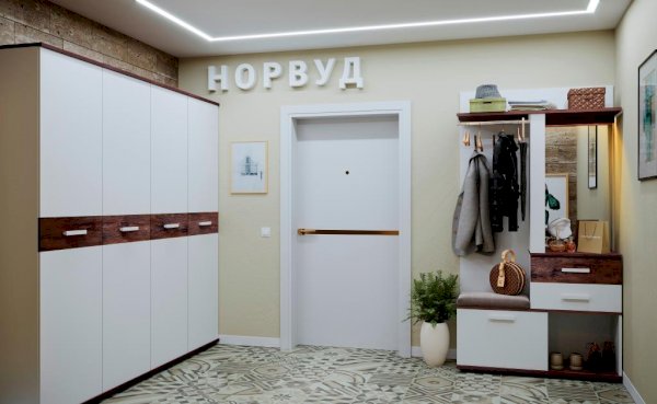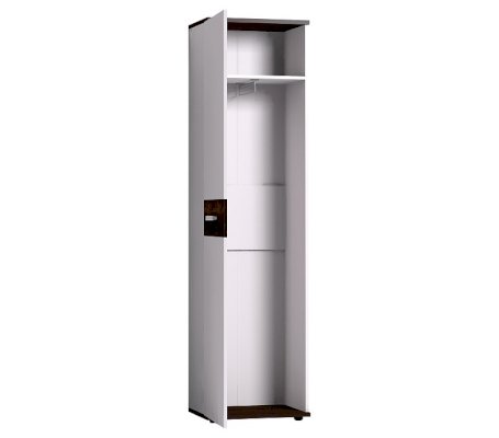 Распашной шкаф для одежды и белья комплектуется выдвижной штангой для одежды. При желании можно докупить и установить модуль Полки Норвуд 72 (в комплекте 3 полки) в заранее просверленные варианты присадки. Верхняя и нижняя детали шкафа толщиной 22 мм и ддекоративная вставка по центру в декоре Орех Шоколадный - яркие акценты простого белого модуля. Ударопрочная кромка на фасаде толщиной 2 мм продлит срок эксплуатации мебели. Фасад шкафа перевешивается на ваше усмотрение на правую или на левую сторону.