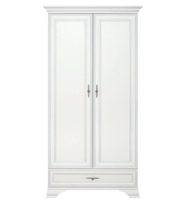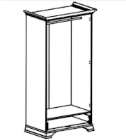 2 распашные двери и 1 выдвижной ящик. Внутри шкафа: штанга стационарная для одежды и полка соединительная.