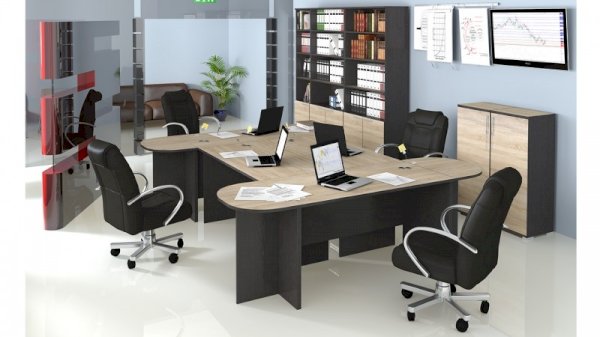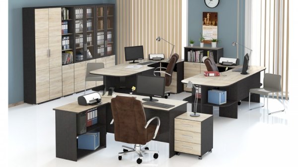 Стильная эргономичная мебель из модульной серии «Успех-2» оформлена в респектабельно-эффектном сочетании контрастных оттенков натуральной древесины: тёмного «Венге Цаво» и светлого «Дуб Сонома». В коллекцию входят столы, шкафы, стеллажи, тумбы разной конструкции и назначения, что позволяет подобрать оптимально отвечающую вашим требованиям меблировку для каждой комнаты офиса.