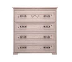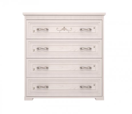 Элегантный и вместительный комод из коллекции «Афродита» отлично дополнит интерьер Вашей спальни. Используйте его в качестве туалетного столика или как дополнительное место для хранения вещей и принадлежностей. Четыре широких выдвижных ящика  позволят разместить как необходимую одежду или постельное белье, так и косметику и другие женские аксессуары. Утонченное оформление и удобные фигурные ручки с обеих сторон каждого ящика придадут интерьеру Вашей спальни изящный вид.