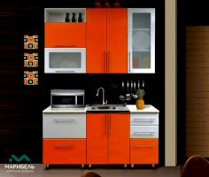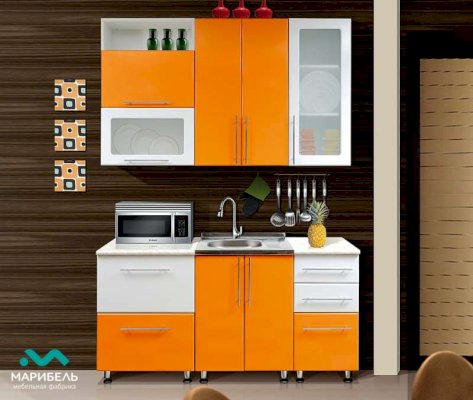 Белый глянец / Оранжевый глянец, Длина 1.6 м. Высота шкафов: 918 мм
