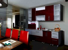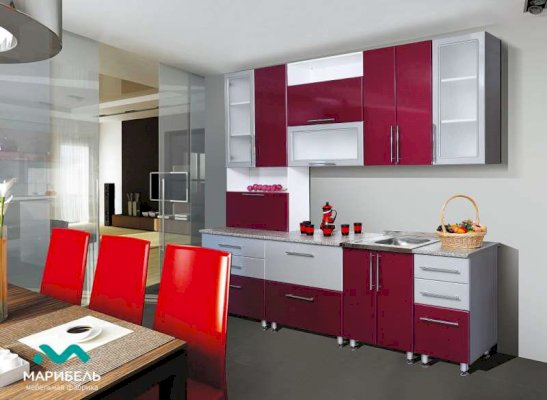 Бордо/Белый, Длина 2.6 м. Высота шкафов: 918 мм