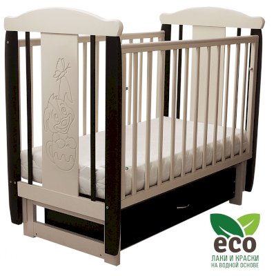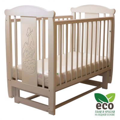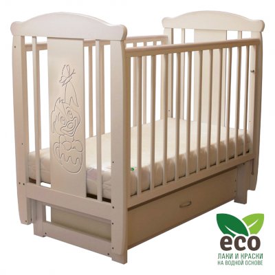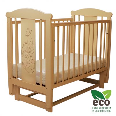 Кроватка "Соня 04" имеет механизм качания поперечный маятник. Механизм качания фиксируется. Возможен вариант с ящиком.
