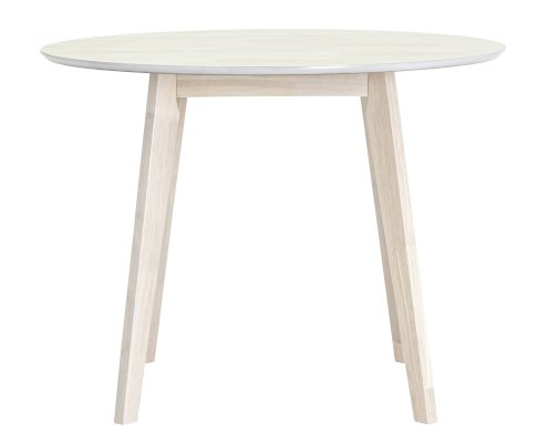 Обеденный деревянный стол из массива гевеи, выполненный в цвете беленого дуба. Столешница выполнена из МДФ плиты, покрытой натуральным шпоном гевеи. Ножки из массива гевеи. Размер столешницы 100х100 см.