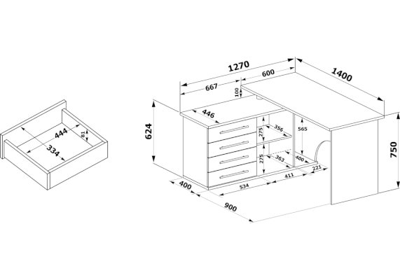 | Комплектация | местодля принтера (техники) / ниша под системный блок / тумбы |