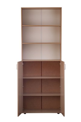 Открытые полки подойдут для папок с документами, справочных материалов и других вещей, которые всегда должны быть в быстром доступе, а также декоративных элементов. За дверцей расположены еще три вместительные полки.