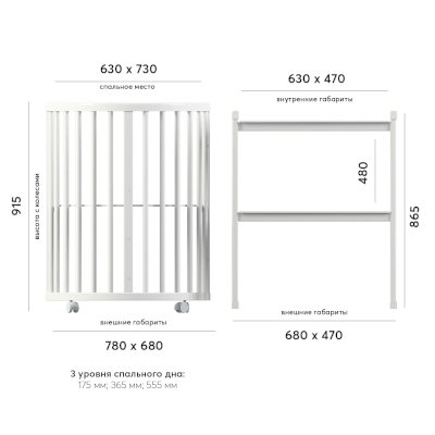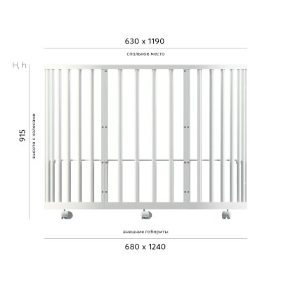 • Высота кровати: 95 см без колес, 100 см с колесами.