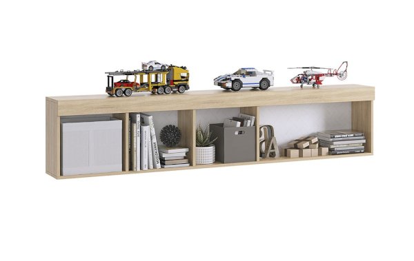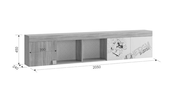 В закрытые шкафы и открытые ниши поместятся все учебники книги и сувениры. Эффектный принтерный рисунок на фасадах выдержан в общем стилистическом решении. Рисунок устойчив к истиранию и ультрафиолету. Можно повесить между шкафов над софой или использовать как самостоятельное изделие.