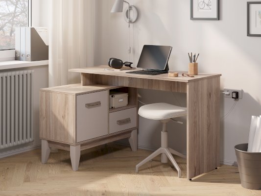 Письменный стол «Скандика» ПС-02 - это универсальное решение для дома и офиса. Данная модель оснащена удобной рабочей поверхностью, на которой можно разместить ноутбук, лампу и рабочие инструменты. Помимо рабочей поверхности также имеется встроенная тумба, которая состоит из просторного отсека за дверцей, ящика и одной открытой полки. Благодаря компактным размерам стол легко уместится даже в небольшой комнате. Створка плотно фиксируется на магнитах.