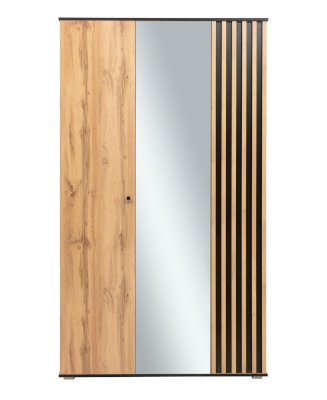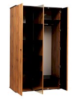 В этой модели – самое оптимальное распределение – как внешне, так и внутренне. Зеркальное полотно в центре очень функционально. Вы можете видеть себя в полный рост, и нет надобности вешать в комнате зеркало. За левой дверцей скрываются полки. Если шкаф стоит в спальне, они отлично подойдут для постельного белья или вещей, которые принято хранить в сложенном виде – свитера, поло, футболки, толстовки, джинсы и т.д. Каждая из полок выдерживает вес до 5 кг. Рядом, за двумя распашными дверцами, находится отделение для одежды на вешалках. И не только! Удобная полка-антресоль из ЛДСП сверху, еще одна полка внизу – здесь можно уместить многое! Металлическая штанга выдерживает вес до 20 кг.