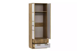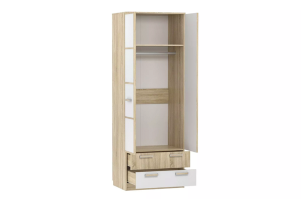 Шкаф «Фанк» предназначен для тех, кто любит выдержанный стиль. Идеально для организации подростковой комнаты. А универсальный дизайн и цветовое решение подойдет как для мальчика, так и для девочки. Внутри модуля предусмотрены овальная штанга для одежды на вешалках. Широкая антресольная полка подойдёт для размещения коробок и аксессуаров. Плавный и бесшумный ход, у двух выдвижных ящиков, обеспечивают шариковые направляющие полного цикла. Благодаря им, равномерно распределяется вес содержимого ящиков.  Классические глухие фасады надежно защитят содержимое шкафа от влаги и пыли.