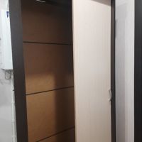 Шкаф-купе Бассо имеет хороший дизайн с зеркалом. Сочетание цвета Венге и дуба соответствует моему вкусу. На мой взгляд, довольно вместительный для небольшой квартиры, в то же время занимает немного места и гармонирует со светлой прихожей. Из недостатков: задняя стенка составляется четырьмя тонкими листами картона или очень тонкого ДСП. По инструкции ее нужно прибивать молотком, что не очень хорошо для конструкции такого хрупкого шкафа. Возникли сложности с плотность прилегание одной двери к боковой стенке. Детали, с помощью которых крепятся верхние ролики, неудобно прикрепляются к фасаду толстыми болтами. Сложно добиться ровного ровного положения роликов на фасаде. Зеркало пришлось клеить самостоятельно. Это не порадовало. В общем, наверное, шкаф хороший за такую цену и для тех, у кого не слишком дорогой ремонт в квартире.