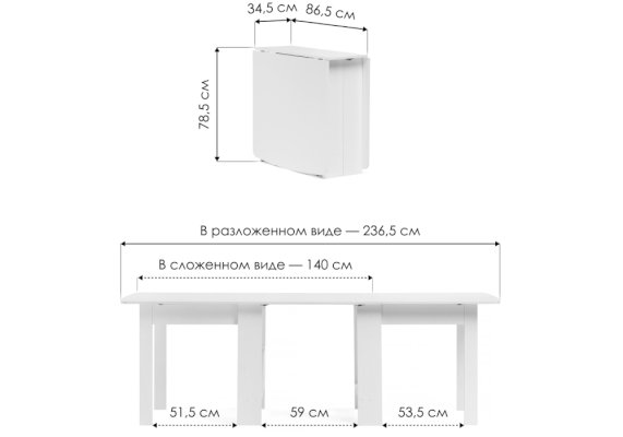 Длина разложенного столика, мм 2406