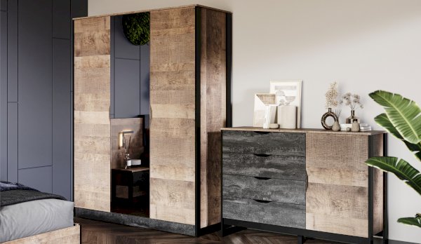 Цвет фасада: Дуб гранж песочный/Железный камень