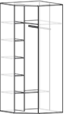 Угловой шкаф - практичная система хранения, позволяющая рационально использовать внутреннее пространство мебели для размещения всего необходимого. Наполнение шкафа состоит из отдела с шестью полками и штангой для одежды.